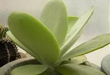 唐印为景天科伽蓝菜属的多年生肉质草本植物。植株中型,株高50厘米,宽20厘米,多分枝;叶片肉质,对生,卵形,全缘,先端钝圆,叶片淡绿色至灰绿色,表面被有厚厚的白粉,光照充足时,叶缘呈红色;圆锥花序,…全部>>