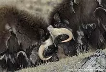 麝牛,是偶蹄目牛科麝牛属哺乳动物。麝牛体型大,但低矮粗壮,头大,吻部宽,眼小;雌雄均具角,四肢短粗,蹄宽大;毛被厚,极耐寒,尾短。雄麝牛在发情时会散发出一种类似麝香的气味,又称麝香牛。…全部>>