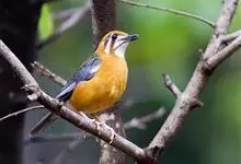 橙头地鸫是鸫科、地鸫属中型鸟类,体长18-22厘米。整个头、颈和下体橙栗色,其余上体包括两翅和尾蓝灰色或橄榄灰色,翅上多具白色翅斑。虹膜褐色或棕褐色,嘴黑褐色或黑色,脚橙黄色或肉黄色。特征极明显。…全部>>