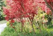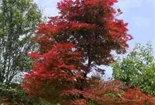 红枫,园艺种,槭树科槭属落叶小乔木,高5~8 m;树冠伞形,枝条开张,细弱。单叶对生,近圆形,薄纸质,掌状7~9深裂,裂深常为全叶片的1/2~1/3,基部心形,裂片卵状长椭圆形至披针形,先端尖,…全部>>