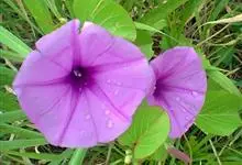 五爪金龙 Sweet),旋花科番薯属多年生缠绕草本植物。茎细长,有细棱;叶片为掌状;花冠紫红色、紫色或淡红色、偶有白色,漏斗状;蒴果近球形。花期5~12月。五爪金龙的叶子类似掌状,有5至7个裂痕,…全部>>