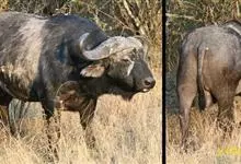 非洲野水牛:共有5个亚种。头体长2.1-3.4米,身高1-1.7米,体重300-900千克。胸膛宽阔,四肢粗壮,头大角长,雄性的角从头部向外和向下扩散,在一些雄性中,角通过覆盖头部的大盾连接。头顶的…全部>>