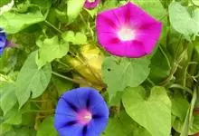 五爪金龙 Sweet),旋花科番薯属多年生缠绕草本植物。茎细长,有细棱;叶片为掌状;花冠紫红色、紫色或淡红色、偶有白色,漏斗状;蒴果近球形。花期5~12月。五爪金龙的叶子类似掌状,有5至7个裂痕,…全部>>