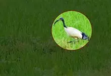 圣鹮头、颈黑色,身体白色,初级和次级飞羽尖端黑色。喙长且厚、黑色下弯,跗蹠与趾黑色。下背部有大量黑色纱状装饰羽,翼下裸露皮肤红色,体侧有时带黄褐色。亚成鸟的头、颈有羽毛,斑驳黑色带有白色纵纹,…全部>>