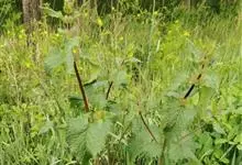 牛蒡,又名大力子、恶实等,为菊科牛蒡属的二年生草本植物。其具有肉质直根;茎直立,粗壮,通常带紫红或淡紫红色;基生叶宽卵形,基部心形,两面异色,上面绿色,叶柄灰白色,…全部>>