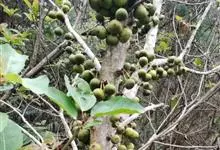 大果榕是桑科榕属的小乔木,株高可达10米;幼枝被柔毛;叶互生,宽卵状心形或近圆形;雄花无梗、匙形、花丝长,雌花生于雌株榕果内,子房白色;榕果簇生于树干基部或老茎短枝上、扁球形或陀螺形,…全部>>
