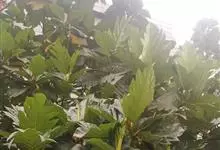 面包树 Fosberg)是桑科波罗蜜属植物。叶大,成熟之叶羽状分裂,表面深绿色,背面浅绿色;穗状花序单生叶腋,雄花序长圆筒形至长椭圆形或棒状;聚花果倒卵圆形或近球形;花期为3~5月,果期为7~10月。…全部>>