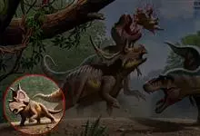牛角龙是生活在白垩纪晚期的植食性恐龙,距今约7000万年前的北美洲,体长约8米。它有一个巨大的脑袋,脑袋后部还有一个超大头盾,眼睛上面有两只大尖角,…全部>>