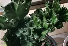 麒麟掌,是大戟科大戟属多年生植物。为金刚纂的带化变异变种。麒麟掌的株乳汁丰富;它的茎圆柱状,上部多分枝,绿色;叶互生,稀少,常生于嫩枝顶端脊上,倒卵形、倒卵状长圆形或匙形,顶端钝圆,具小凸尖,全缘,…全部>>