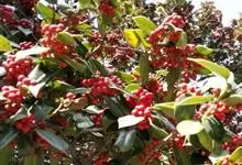 枸骨又名猫儿刺、老虎刺等,为常绿灌木或小乔木,叶形奇特,碧绿光亮,四季常青,入秋后红果满枝,经冬不凋,艳丽可爱,是优良的观叶、观果树种,在欧美国家常用于圣诞节的装饰,故也称“圣诞树”。全部>>