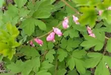荷包牡丹 Fukuhara),是罂粟科荷包牡丹属的多年生草本植物,株高30-60厘米,具肉质根状茎;茎直立呈圆柱形;叶二回三出全裂,状似牡丹叶;总状花序顶生,基部为心形,花瓣紫红色至粉红色,稀白色,…全部>>