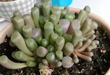 五十铃玉是番杏科窗玉属的多年生肉质植物,别名有“棒叶花”“婴儿脚趾”。植株高5厘米,叶片淡绿色,肉质,叶对生;叶片顶端透明,根部稍暗红色,整体呈细棍棒状;夏末至秋季开花,金黄色;植株不会长高,…全部>>