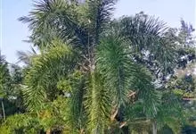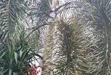 狐尾椰是棕榈科狐尾椰属的常绿乔木;木植高大通直,茎干单生,茎部光滑,有叶痕,略似酒瓶状;叶色亮绿族生茎顶,羽状全裂,小叶披针形,轮生于叶轴上,形似狐尾;穗状花序,分枝较多;雌雄同株;果卵形,…全部>>