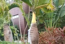 酒瓶椰 H. E. Moore)是棕榈科椰子属植物,单干,树干短,肥似酒瓶,树高可达3米以上,胸径达38-60厘米。羽状复叶,叶长1.8-2.2米,小叶披针形,中脉和侧脉凸起。叶柄淡红色,没有黄色的…全部>>