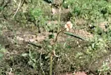 合萌,别名田皂角、水松柏、水槐子、水通草,中药名:梗通草。豆科一年生草本或亚灌木状植物,茎直立,叶对生,总状花序,腋生,花萼膜质,花冠淡黄色,子房扁平,线形。种子黑棕色,肾形,花果期7~10月。…全部>>