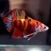 孔雀鱼,是鳉形目花鳉科花鳉属鱼类。孔雀鱼体形修长,其形态变化主要在尾鳍,常见的尾鳍形态有圆尾、尖尾、铲尾等。雌、雄鱼差别明显,雄鱼的大小只有雌鱼的一半左右,雄鱼体色丰富多彩,尾部形状千姿百态。…全部>>