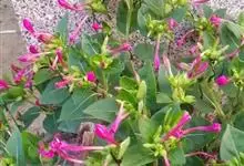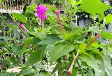 即紫茉莉,英文名:Four-o'clock,Marvel of Peru,为紫茉莉科、紫茉莉属多年生草本植物,一年生栽培。株高50~80cm。根粗壮,茎多分枝而散生。叶对生,卵形或心脏形。花数朵簇生…全部>>