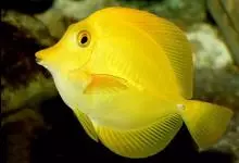 黄高鳍刺尾鱼其体卵圆而侧扁,背鳍及臀鳍硬棘尖锐,前方软条较后方延长,呈伞形;尾鳍截平。尾棘在尾柄前部,稍可活动。幼鱼及成鱼体、头部及各鳍皆一致呈鲜黄色;胸鳍有狭暗缘;尾柄棘白色。…全部>>