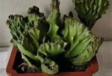麒麟掌,是大戟科大戟属多年生植物。为金刚纂的带化变异变种。麒麟掌的株乳汁丰富;它的茎圆柱状,上部多分枝,绿色;叶互生,稀少,常生于嫩枝顶端脊上,倒卵形、倒卵状长圆形或匙形,顶端钝圆,具小凸尖,全缘,…全部>>