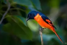 灰喉山椒鸟:共有8个亚种。体长18-22厘米。雄鸟头部和背亮黑色,腰、尾上覆羽和下体朱红色,翅黑色具一大一小的两道朱红色翼斑。中央尾羽黑色,外侧尾羽基部黑色,端部红色。…全部>>