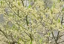 毛叶木姜子是樟科木姜子属植物,落叶灌木或小乔木,高达4米;树皮绿色,小枝灰褐色,有柔毛。叶互生或聚生枝顶,长圆形或椭圆形,上面暗绿色,下面带绿苍白色,羽状脉,伞形花序腋生,花被裂片黄色,果球形,花期…全部>>