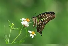 青带凤蝶Graphium sarpedon ,又名青凤蝶,是最普遍的中型凤蝶,飞行速度很快。青带凤蝶的翅膀中央有许多浅蓝色的斑点,很整齐地排列成一条直线。这些斑点由上而下逐渐变大,就像一条青色的带子。全部>>