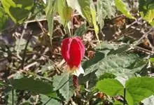 红萼苘麻是锦葵科、苘麻属常绿软木质灌木,叶绿色,长5-10厘米,心形,叶端尖,叶缘有钝锯齿,有时分裂,有细细的叶柄;叶互生,掌状叶脉;花单生于叶腋,具长梗,下垂;花萼红色,半套着大约4厘米长的花瓣,…全部>>