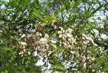 槐 Schott),豆科槐属的落叶乔木。树皮暗灰色,树冠球形,老时则呈扁球形或倒卵形。枝叶密生,羽状复叶。圆锥花序顶生,花蝶形,夏季开黄白色花,略具芳香。荚果肉质,念珠状不开裂,黄绿色,常悬垂树梢,…全部>>