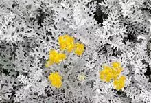 银叶菊,是菊科疆千里光属多年生草本植物。银叶菊的茎灰白色,植株多分枝;叶回羽状裂,正反面均被银白色柔毛;头状花序集成伞房花序,舌状花小,金黄色,管状花褐黄色;花期为6-9月。银叶菊原产于地中海沿岸地区,…全部>>