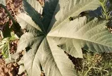 蓖麻是大戟科蓖麻属一年生粗壮草本或草质灌木。小枝、叶通常被白霜,茎直立,无毛,多液汁,绿色或稍带紫色,被白粉;叶轮廓近圆形,边缘具锯齿,叶柄粗壮,中空;蒴果卵球形或近球形,果皮具软刺或平滑;种子椭圆形,…全部>>