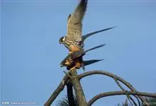 红隼:是隼科、隼属的小型猛禽之一。体重173-335克,体长305-360毫米。翅狭长而尖,尾亦较长,外形和共同爪隼非常相似。雄鸟头蓝灰色,背和翅上覆羽砖红色,具三角形黑斑;腰、尾上覆羽和尾羽蓝灰色,…全部>>