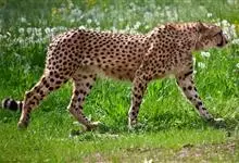 猎豹是食肉目猫科猎豹属哺乳动物,又称印度豹。胸腔深,腰细窄。粗糙的短毛为淡黄色,带黑色圆斑;腹部为白色,没有斑点,但尾巴有斑纹,到末梢共四到六圈黑色环纹。雄性比雌性大。寿命一般是6.9年。…全部>>