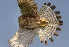 红隼:是隼科、隼属的小型猛禽之一。体重173-335克,体长305-360毫米。翅狭长而尖,尾亦较长,外形和共同爪隼非常相似。雄鸟头蓝灰色,背和翅上覆羽砖红色,具三角形黑斑;腰、尾上覆羽和尾羽蓝灰色,…全部>>