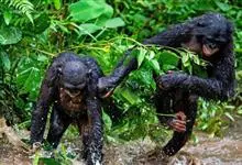 黑猩猩是灵长目人科黑猩猩属哺乳动物。身体臃肿,手臂较长,双腿较短,没有尾巴,身体表面大多覆盖着黑色长毛,但脸、双耳、手指、脚趾裸露无毛:面部呈灰褐色,眉脊很高,眼睛大且眼窝深凹,头部两旁的耳朵大而突出。…全部>>