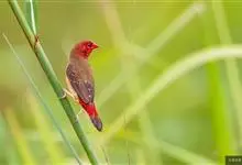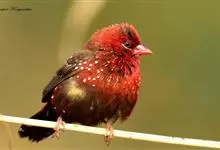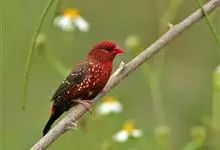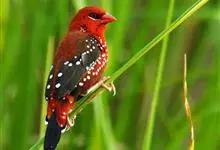 红梅花雀小型鸟类,体长9-10厘米。雄鸟通体朱红色,背、肩、胸等满布白色小斑点,两翅和尾黑褐色均具白色端斑,嘴红色,脚蜡黄色。雌鸟上体淡褐色或赭褐色,翅上中覆羽、大覆羽和内侧飞羽末端具白色斑点,…全部>>