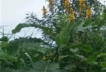 翅荚决明 Roxb.)是豆科决明属灌木植物,高3米。羽状复叶,在叶柄和叶轴上有窄翅;小叶倒卵状长圆形,先端圆钝,基部斜截形;总状花序顶生和腋生;荚果带形,…全部>>