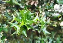 构骨叶冬青学名枸骨,又名猫儿刺、老虎刺、八角刺、鸟不宿、构骨、狗骨刺、猫儿香和老鼠树。常绿灌木或小乔木,高1-3米,二年枝褐色,三年生枝灰白色,叶片厚革质,花淡黄色,果球形,直径8-10毫米,成熟时…全部>>