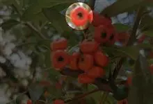 火棘 H. L. Li)是蔷薇科火棘属常绿灌木,老枝呈暗褐色;叶片呈倒卵形,边缘有钝锯齿,齿尖向内弯,两面皆无毛;叶柄短,无毛或嫩时有柔毛;花序是复伞房状,花瓣呈白色近圆形;果球近圆形,…全部>>