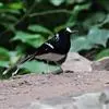 斑背燕尾是鹟科、燕尾属中型鸟类,体长24-25厘米。额至头顶前部白色,其余头、颏、喉、胸黑色,后颈有一白领,背黑色具圆形白色斑点,腰白色,两翅黑色具白色翅斑,尾呈深叉状,黑色、具白色端斑。…全部>>