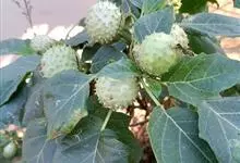 曼陀罗,茄科曼陀罗属一年生大型草本植物,全株光滑。有臭气;叶呈广卯形,边缘具不规则波状浅齿裂;花单生于枝杖间或叶腋,直立,有短梗;花萼是筒状裂片三角形,颜色为白色或淡紫色;果实为蒴果卵状,…全部>>