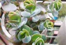 唐印为景天科伽蓝菜属的多年生肉质草本植物。植株中型,株高50厘米,宽20厘米,多分枝;叶片肉质,对生,卵形,全缘,先端钝圆,叶片淡绿色至灰绿色,表面被有厚厚的白粉,光照充足时,叶缘呈红色;圆锥花序,…全部>>
