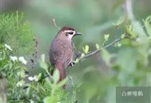 白颊噪鹛是雀形目噪鹛科噪鹛属鸟类,又称土画眉、小画眉、小噪鹃。成鸟额至头顶栗褐色,长眉纹、眼先和颊纹棕白色,眼后至耳羽深褐色,…全部>>