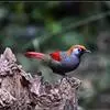 赤尾噪鹛中型鸟类,体长24~28厘米。头顶至后颈红棕色,两翅和尾鲜红色,眼先、眉纹、颊、颏和喉黑色,眼后有一灰色块斑。其余上下体羽大都暗灰或橄榄灰色。特征极明显,特别是通过鲜红色的头顶、翅和尾。…全部>>