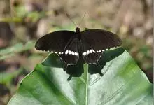 玉斑凤蝶Papilio helenus 别名白纹凤蝶,是凤蝶科凤蝶属美凤蝶亚属大型种类。雌雄同型;体翅皆黑色,后翅正面中室外有3个并列的白色斑,亚外缘有1列模糊的新月形红色斑,…全部>>