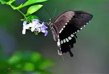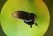 玉斑凤蝶Papilio helenus 别名白纹凤蝶,是凤蝶科凤蝶属美凤蝶亚属大型种类。雌雄同型;体翅皆黑色,后翅正面中室外有3个并列的白色斑,亚外缘有1列模糊的新月形红色斑,…全部>>