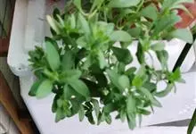 筒叶花月,是景天科青锁龙属的多年生草本植物。植株多分株,灌木状,茎较粗壮,圆柱形,表皮灰褐色;叶片肉质,互生,呈圆筒状,簇生于茎或分枝顶端,叶端呈斜截形,截面为椭圆形;花呈星状,淡白色;花期秋季。…全部>>