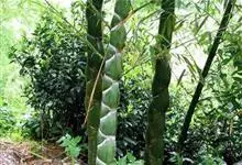 龟甲竹 Mitford),竿高达20余米,粗者可达20余厘米,幼竿密被细柔毛及厚白粉,箨环有毛,老竿无毛,并由绿色渐变为绿黄色;基部节间甚短而向上则逐节较长;竿环不明显,低于箨环或在细竿中隆起。…全部>>