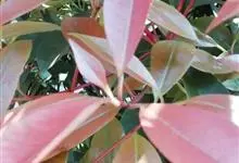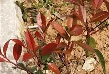 红叶石楠 是蔷薇科,石楠属杂交种,为常绿小乔木或灌木,乔木高可达5米、灌木高可达2米。叶片革质,长圆形至倒卵状、披针形,叶端渐尖,叶基楔形,叶缘有带腺的锯齿,花多而密,复伞房花序,花白色,梨果黄红色,…全部>>