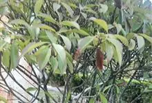 石楠 Kalkman),是蔷薇科石楠属的常绿乔木,高5~12米,株型紧凑,树冠圆球形。树枝为褐灰色;鳞片为褐色,没有毛;叶片革质,长椭圆至侧卵状椭圆形,有锯齿,新叶红色光亮。复伞房花序,白色小花,…全部>>