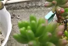 玉米石是景天科、景天属植物。多年生草本多浆植物。植株低矮丛生,多分枝。叶膨大成圆筒形、卵形或近小球形,互生至簇生,长0.6-1.2厘米,宽0.4-0.7厘米,叶端钝圆,亮绿色,肉质,硝带红晕,…全部>>